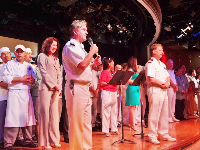 Raphael & the orchestra had everyone in a party mood, lots of dancing. Finally Capt. Glenn, Rick, Josef & Elise took to the stage for the countdown. Confetti falling from blowers upstairs; & the balloons cascading down from the netting (just as it had done 95 days ago). And the final straw.....Auld Lang Syne. The tear jerker of all time. I cried every step of the way back to the cabin. By this time tomorrow, this will probably feel like a surreal dream.