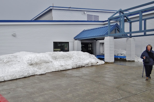 I had no intention of going into the museum or the hotel; I just wanted to ride around & see the scenery. That would not be easy from the back row of the van with windows covered with muddy slush. After several ‘loops’, when the van was empty except for me, I asked if I could move to the front to get better shots. That created the opportunity for me to learn about life in such an isolated town. The population is over 4,000; don't know where all these people might be hiding because it's very small. With the huge fishing industry here, there is only 2% unemployment. Because it is so remote, the cost of living here is 200% higher than in Anchorage (150% higher than the national average).